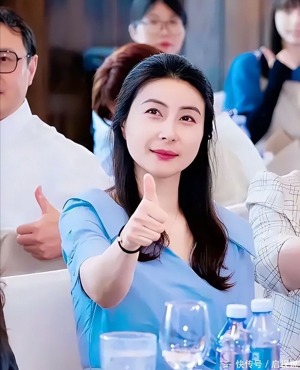 妆容近乎素颜,眼角细纹清晰可见,毫无修饰之意。